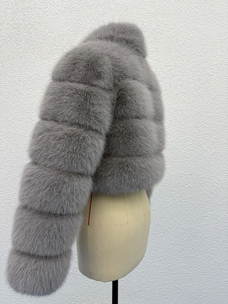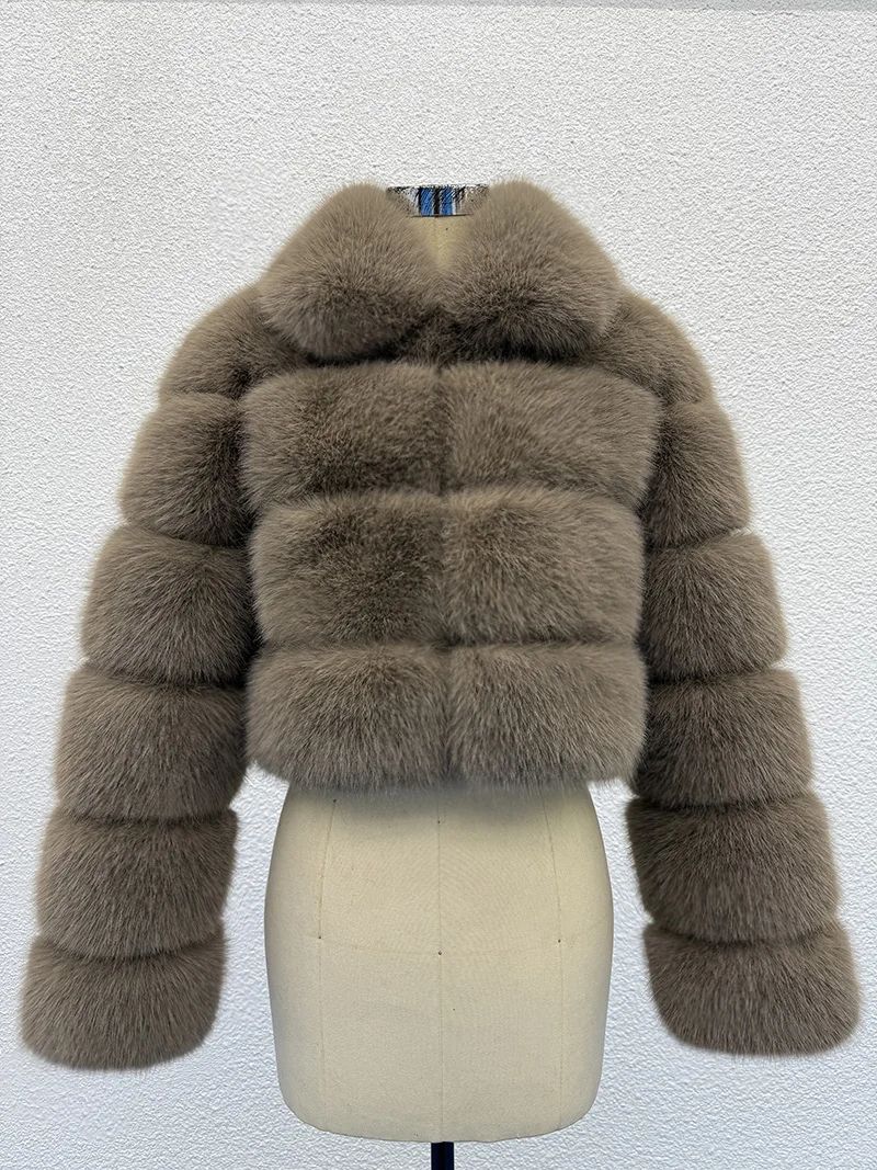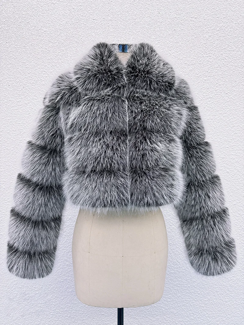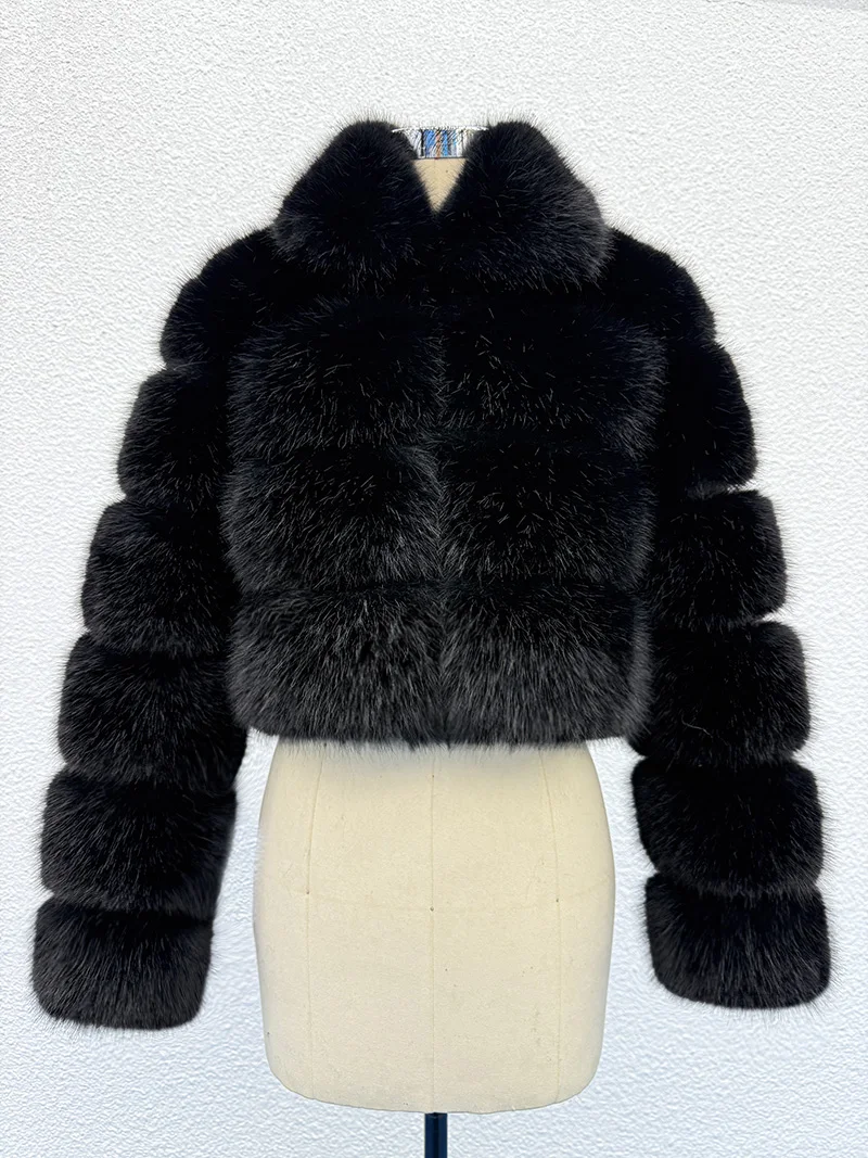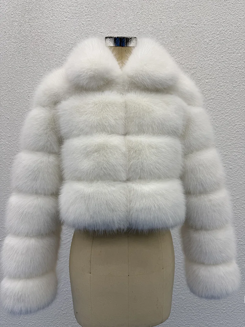 High Quality Cropped Fur Top FAUX Fox Fur Coat Woman Turn down Fur Collar Winter Fur Coats Woman Clothes Fluffy Jacket