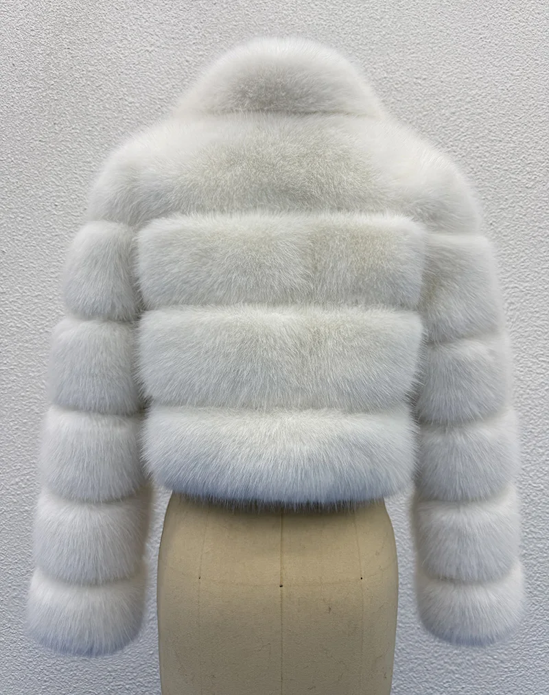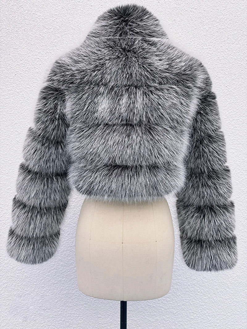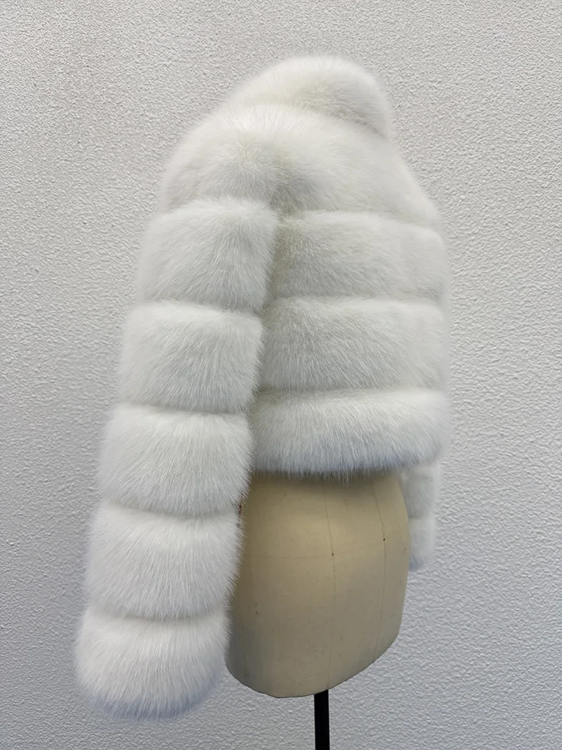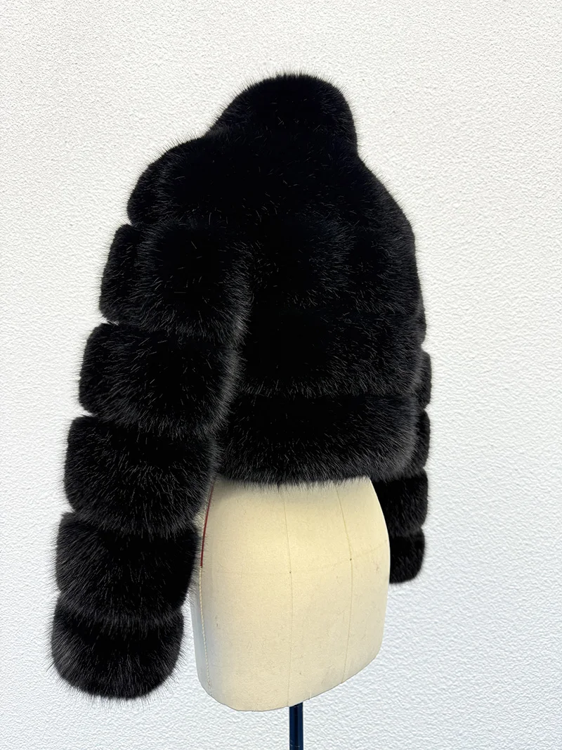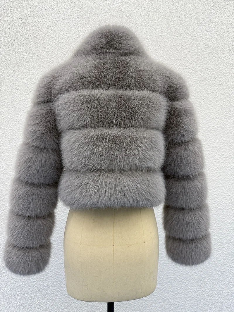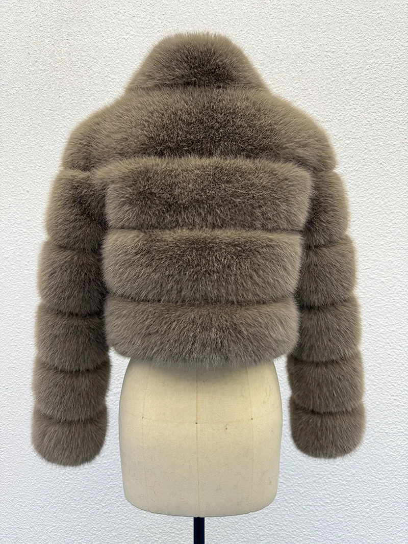 High Quality Cropped Fur Top FAUX Fox Fur Coat Woman Turn down Fur Collar Winter Fur Coats Woman Clothes Fluffy Jacket