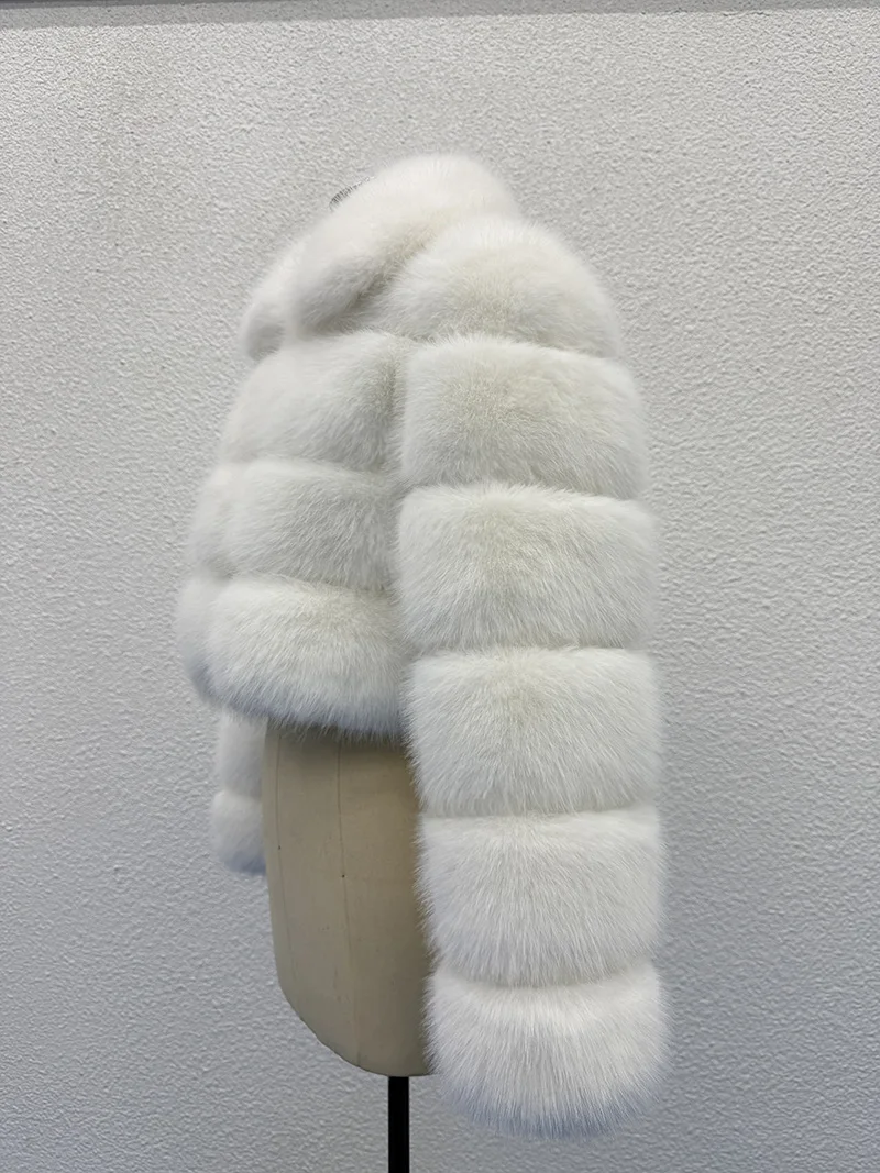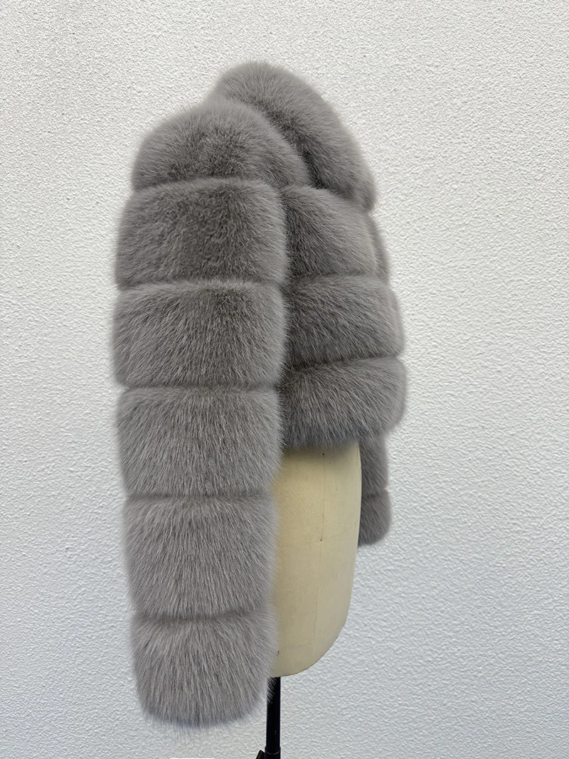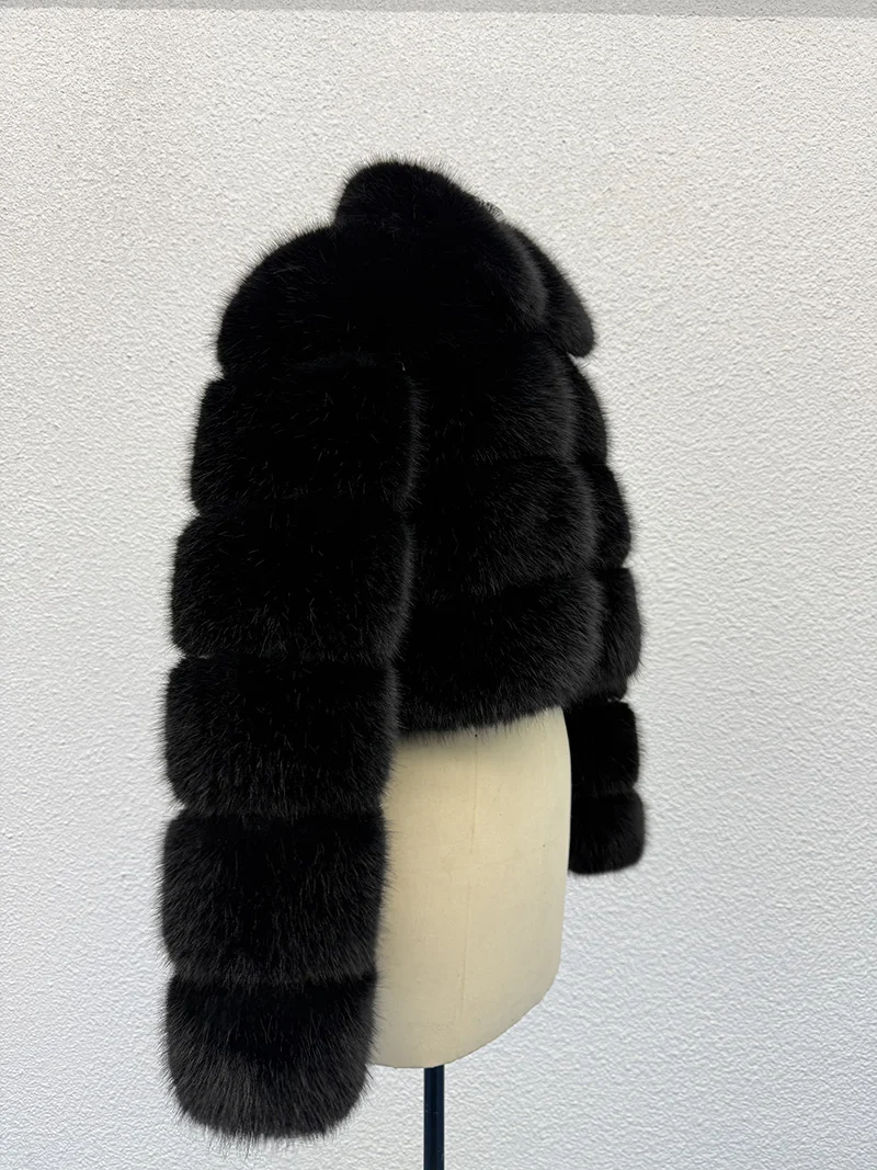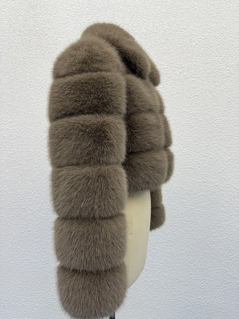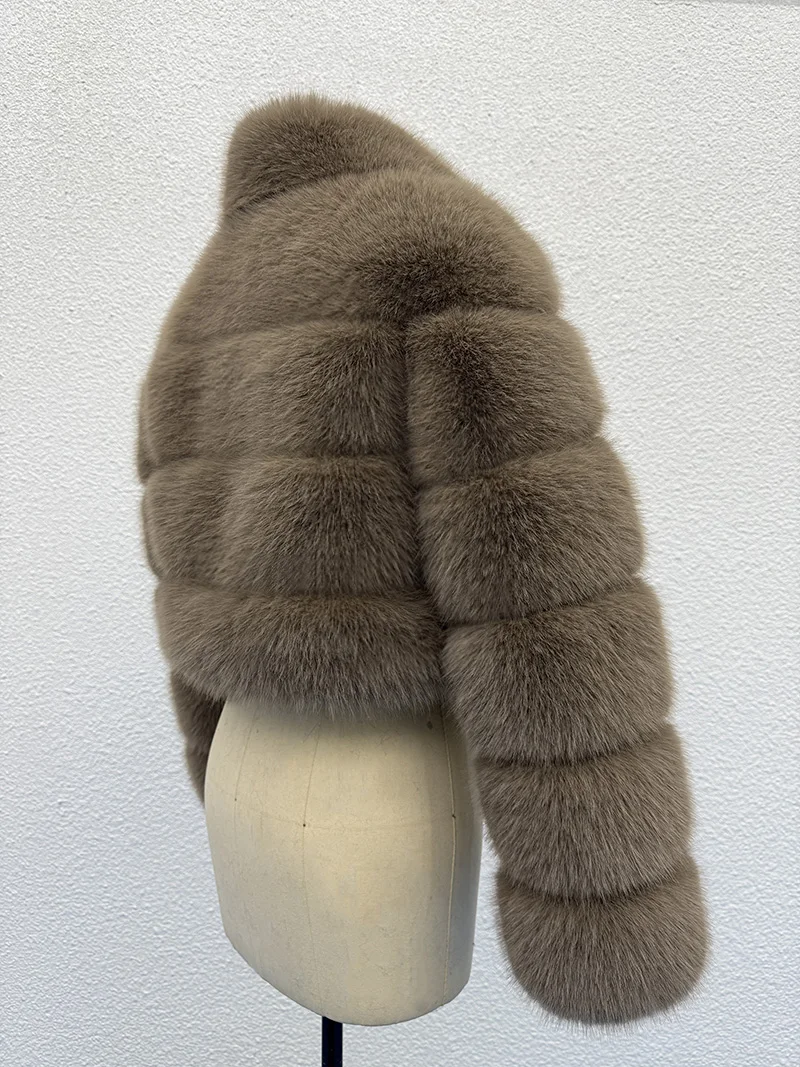 High Quality Cropped Fur Top FAUX Fox Fur Coat Woman Turn down Fur Collar Winter Fur Coats Woman Clothes Fluffy Jacket