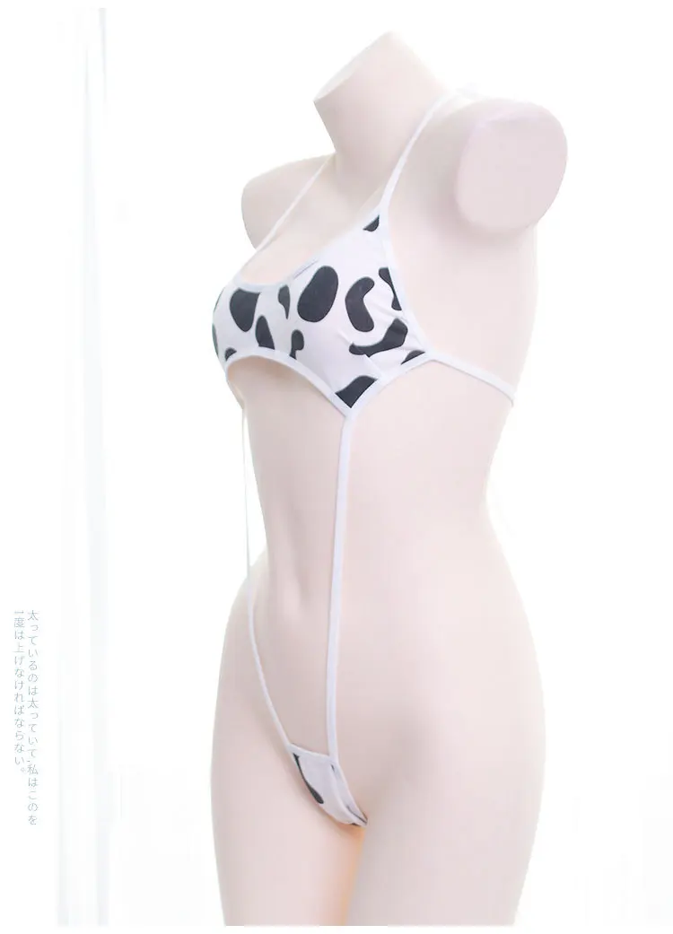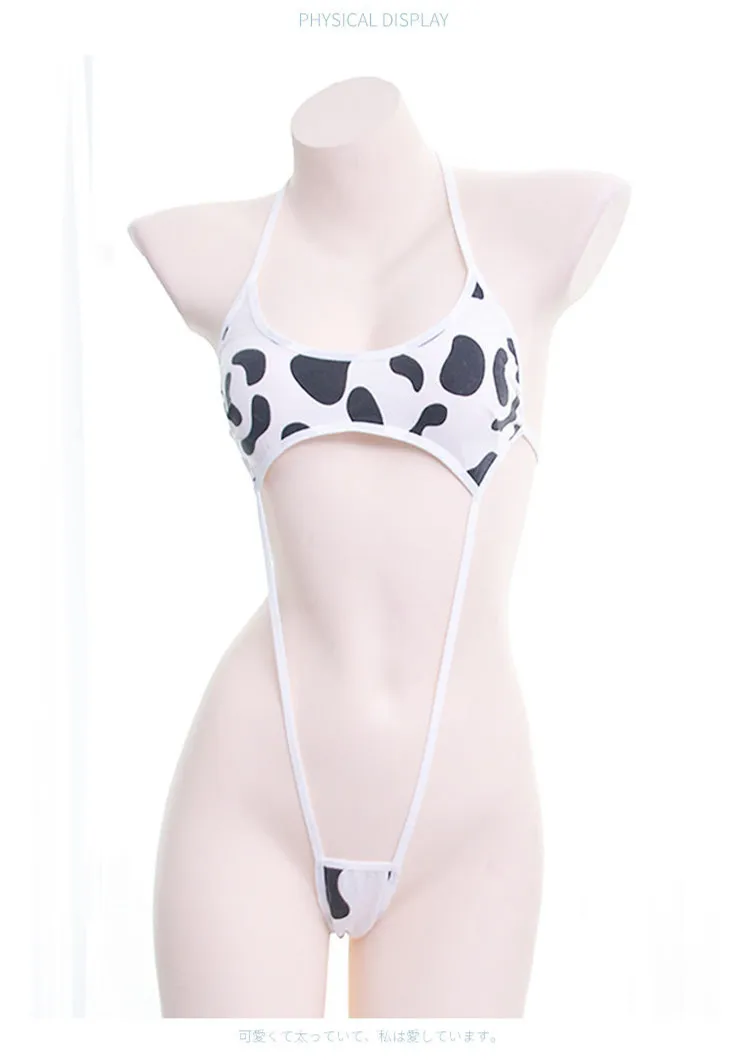 Kawaii Cosplay Cow Print Mini Backless One Piece Micro Bikini Jumpsuit Erotic Sex Costumes Bodysuit for Women Sexy Lingerie
