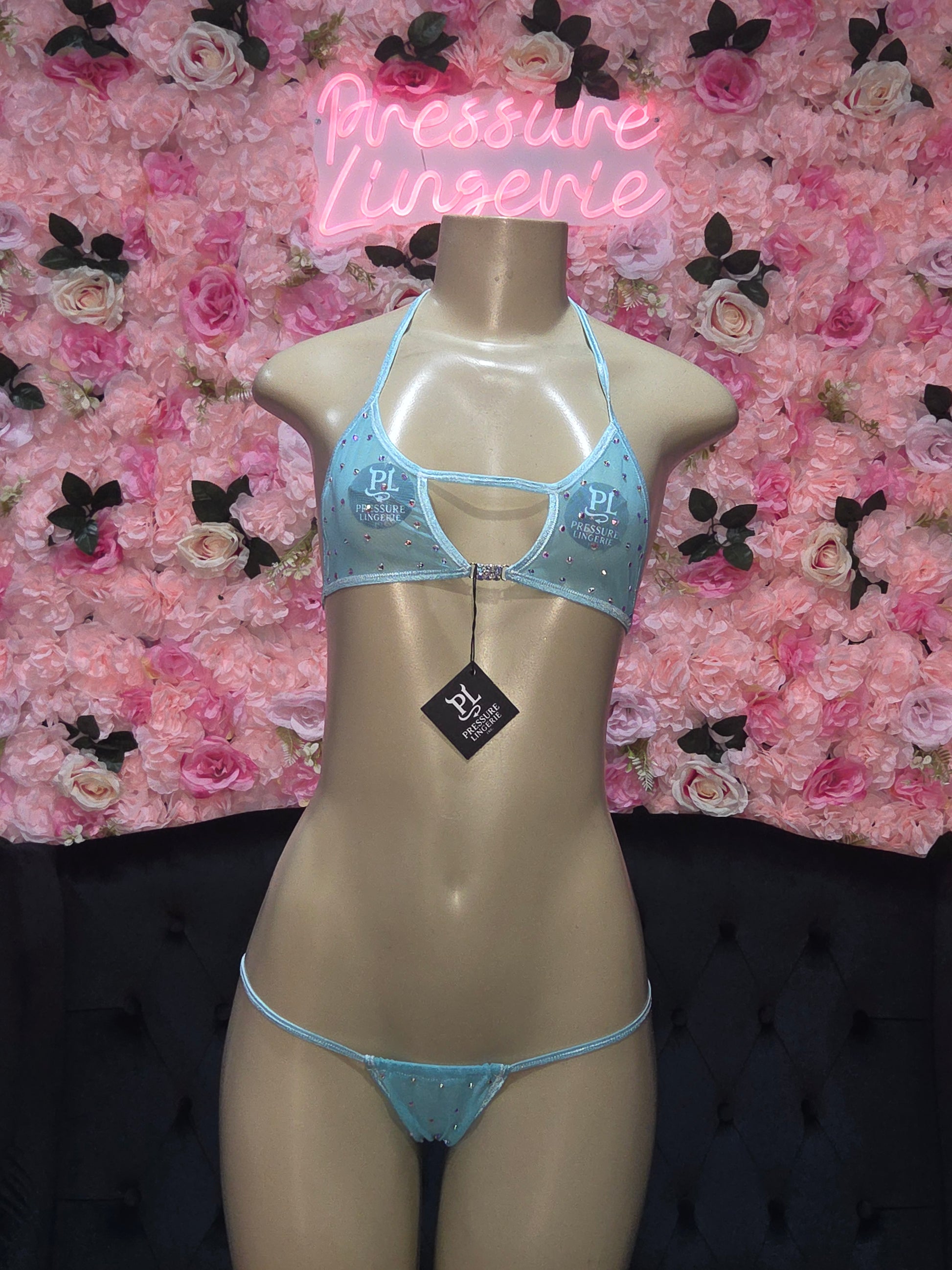 Slip into seduction with our Baby Blue Diamond Mesh Set, a dreamy two-piece that’s equal parts delicate and daring. Designed in a sheer baby blue mesh adorned with dainty rhinestones, this set sparkles with every step and shimmy.