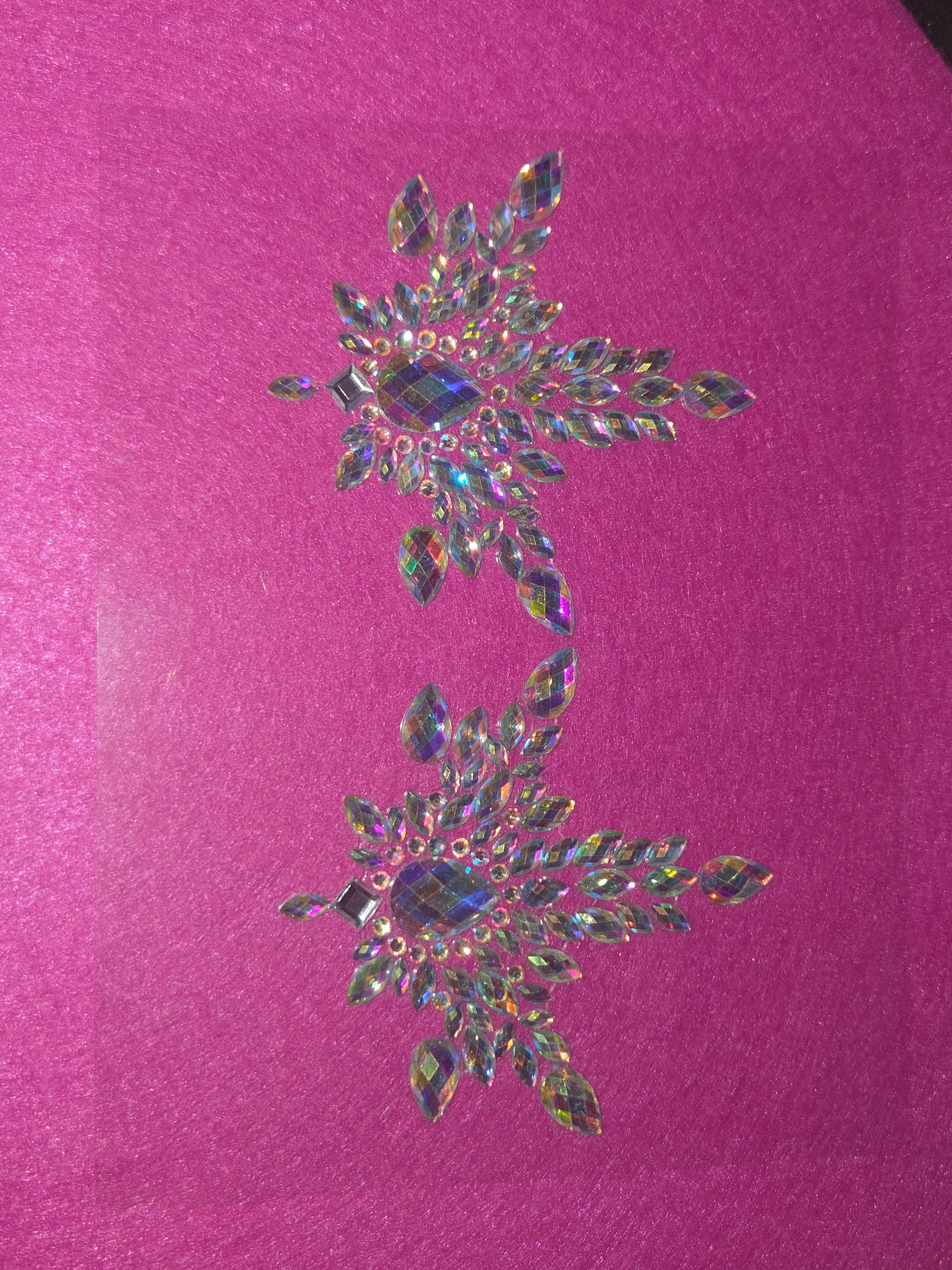 Crafted with iridescent, light-catching rhinestones, each design lays flat against your skin and can be worn solo or styled with mesh fits, sheer looks, or festival 'fits for an unforgettable vibe. Whether you’re on stage, in the crowd, or behind closed doors—these gems guarantee you stay center stage.