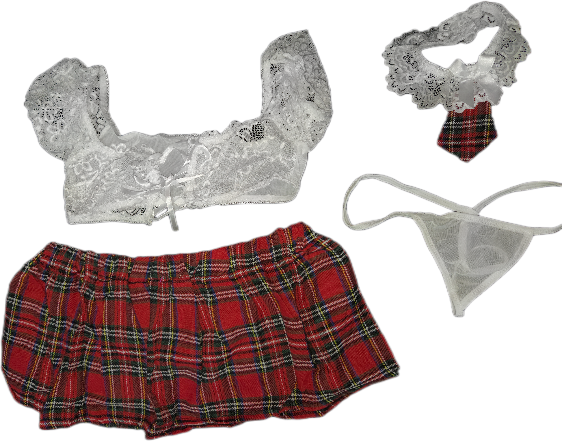 Detention Tease 4-Piece School Girl Set – Adjustable Lace Crop Top