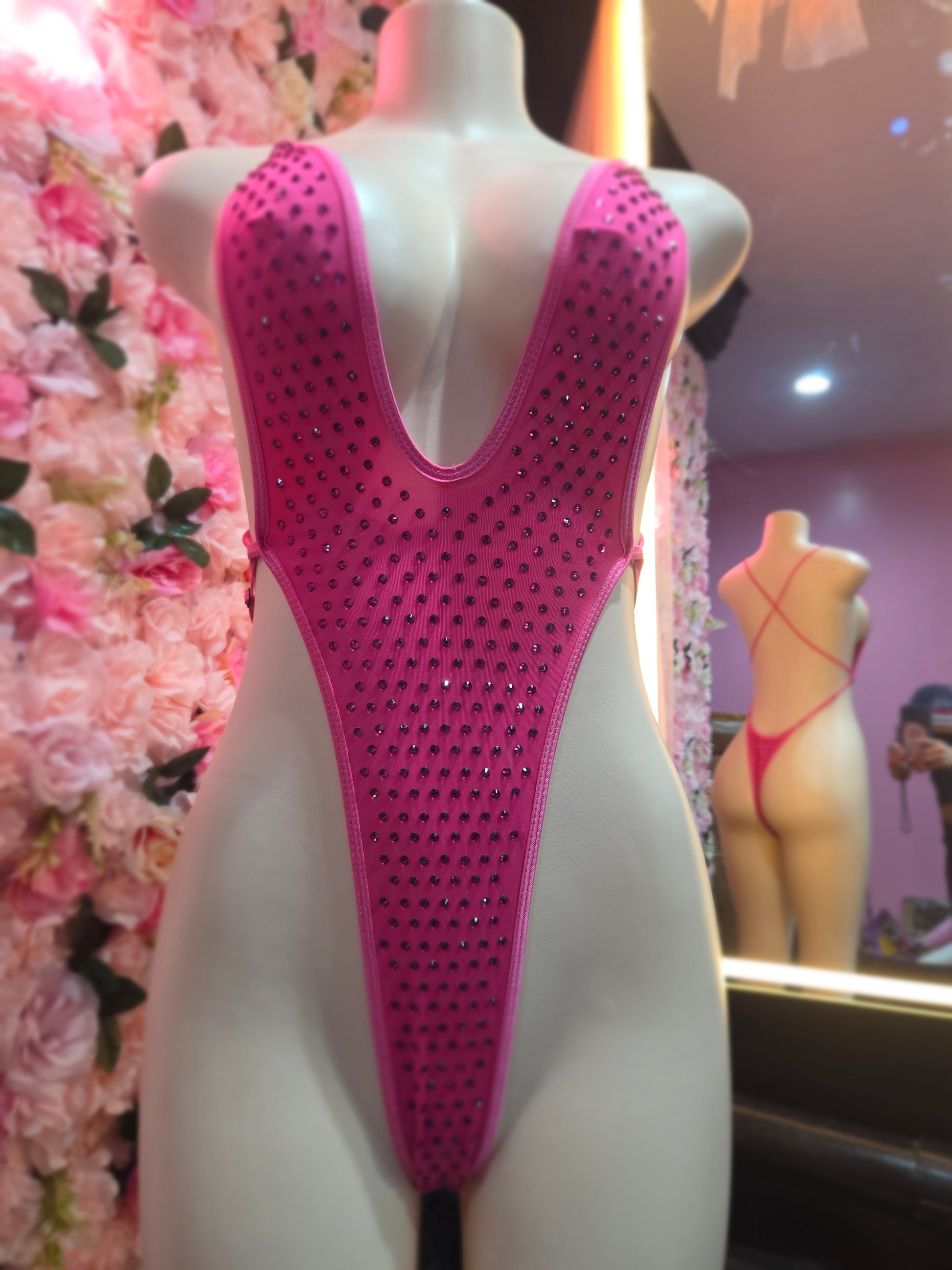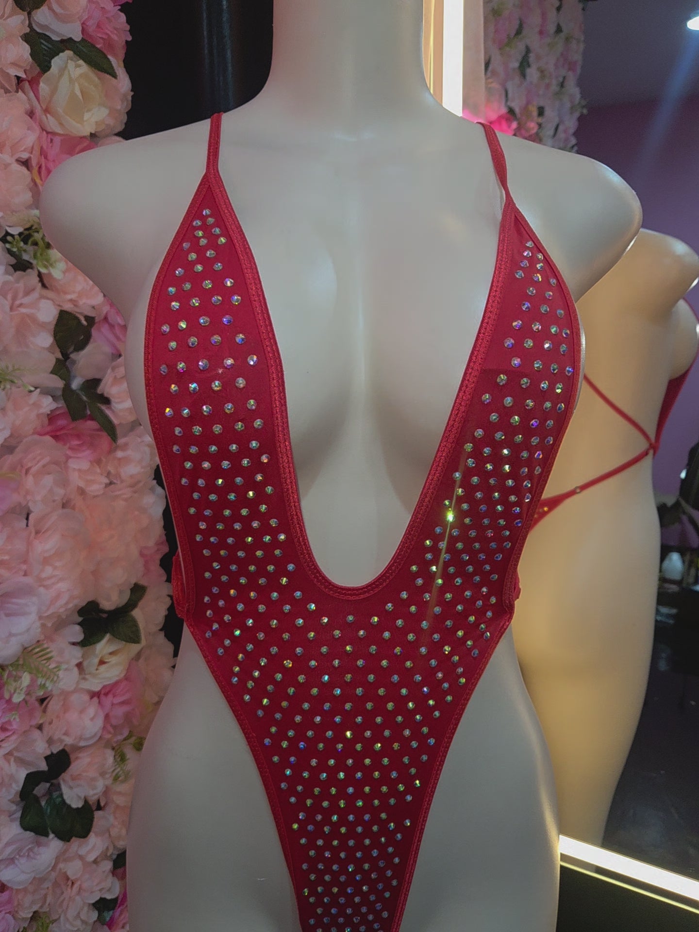 Our Diamond Drip Rhinestone Monokini is a show-stopping piece crafted for women who own their confidence and crave center stage. This ultra-sexy, high-cut one-piece features a deep plunge neckline and a barely-there thong back—giving you an unforgettable silhouette from every angle.