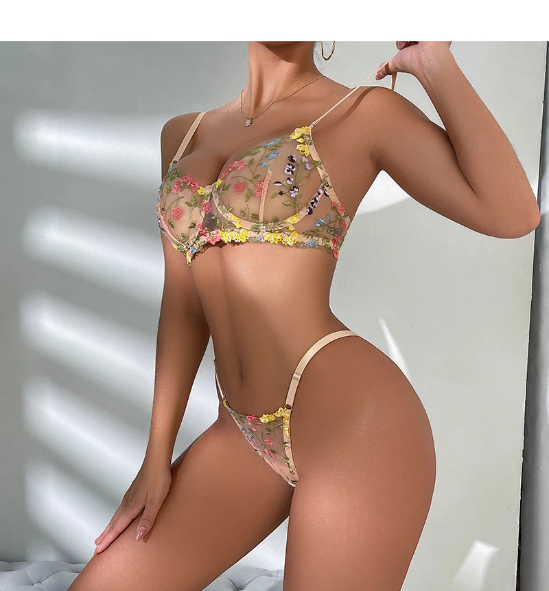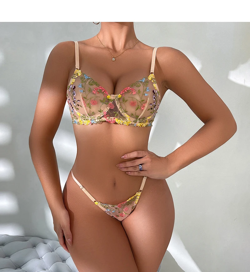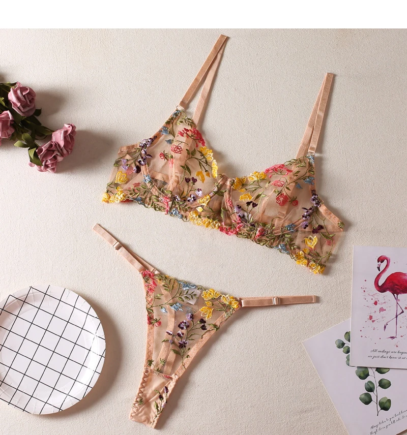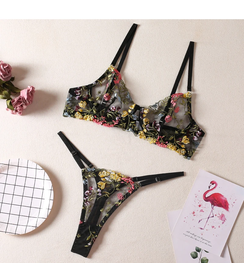 Sexy Lingerie Set Floral Transparent Lace Bra Panties Brassiere Women Underwear G-String Temptation Panty Lady Briefs