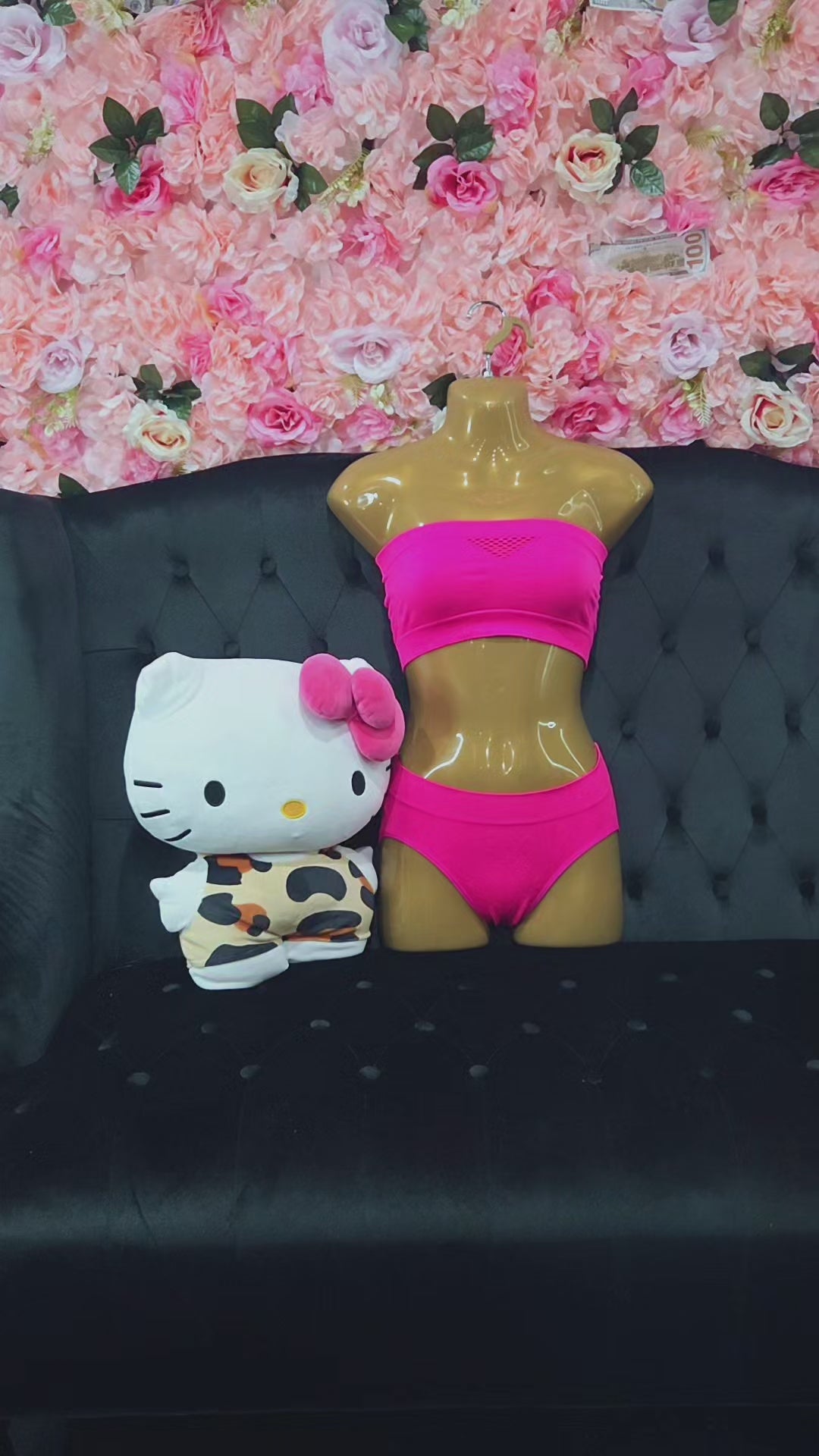 - Bandeau crop top + rhinestone “That’s Hot” panties