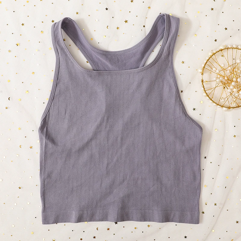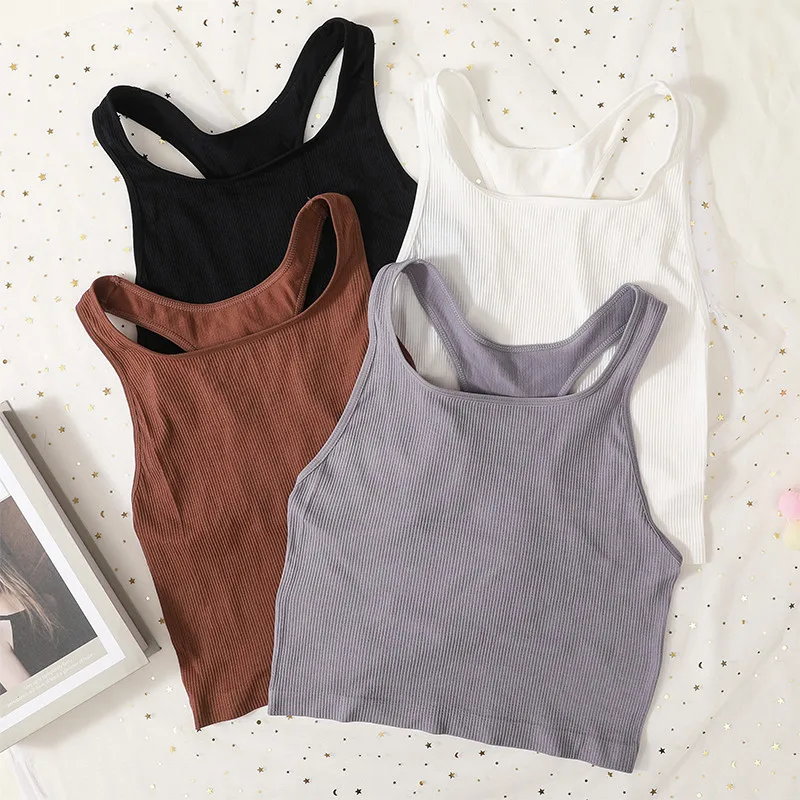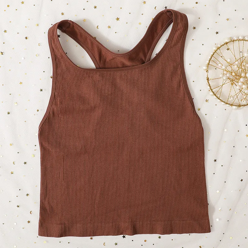 Women Tank Tops Sports Crop Top Female Solid Color Ribbed Cami Sexy Lingerie Seamless Underwear Sexy Backless Camisole